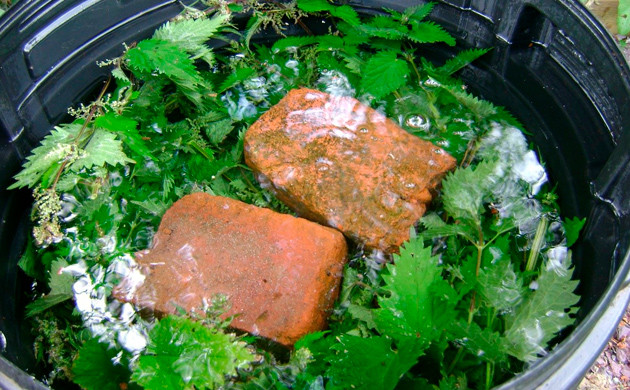 Простой способ подкормки конопли органикой – удобрение сброженной травой. Подойдет любая, но самый лучший настой получается на крапиве. Для этого ботву складывают в емкость, старательно разминают для выделения сока и заливают небольшим количеством воды, чтобы та просто покрыла траву. Емкость закрывается крышкой и настаивается в течение недели. Далее жидкость процеживается и разводится с водой в соотношении 1:10 для полива.