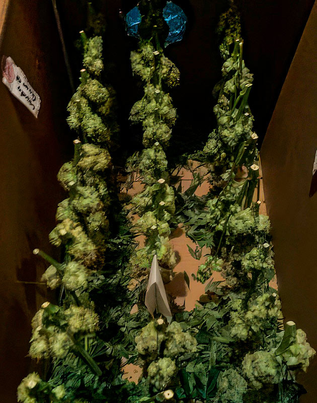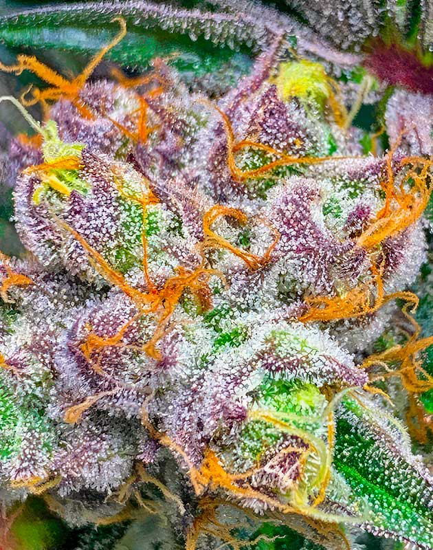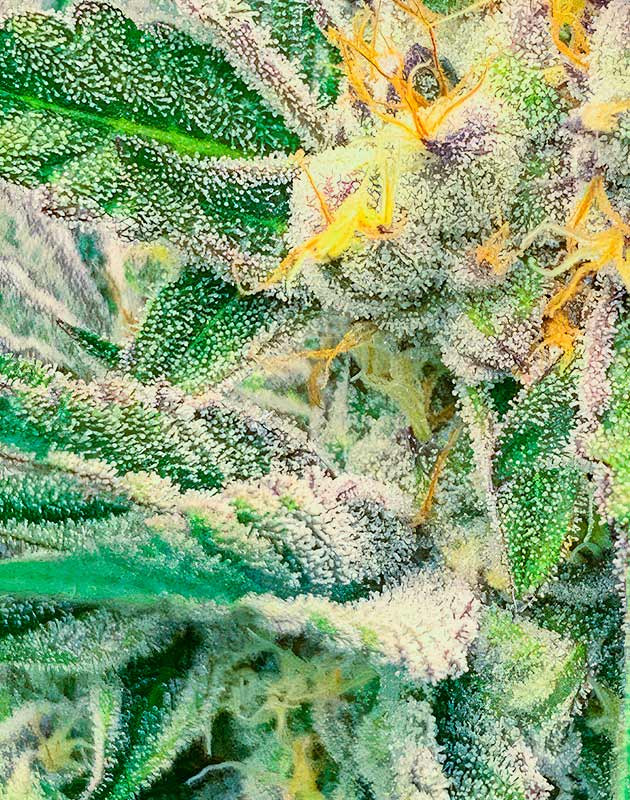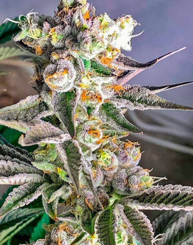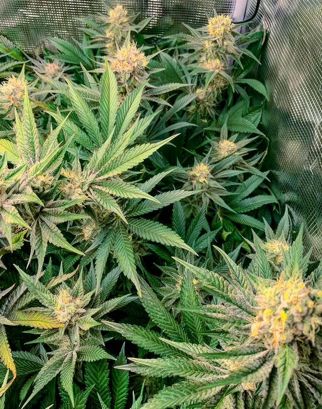 Мне удалось выхватить какой-то сумасшедший фенотип RS 11 x Banana OG. Мало того что девочки росли словно на дрожжах, как настоящая сатива, так еще и отцвели намного раньше срока. Все тяжести жизни вроде низкой влажности в период ранней веги, сбоя светового режима, агрессивных тренировок и отсутствия пересадки в нужное время растения прошли с минимальными потерями. Шишки получились удивительно смолистые и с причудливой структурой, похожей на какие-то декоративные цветы.