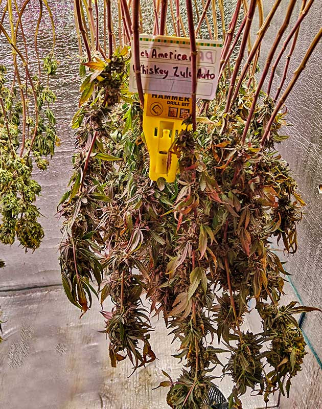Полные 11 недель жизни за спиной, и эта прекрасная история подошла к своему логическому завершению. После двух недель промывки Whiskey Zulu Auto дошел до пика своей зрелости. Трихомы на 70 % янтарные, а остальные белые. Ветки готовы надломиться под весом твердых шишек, так что самое время собирать этот прелестный пурпурный урожай!