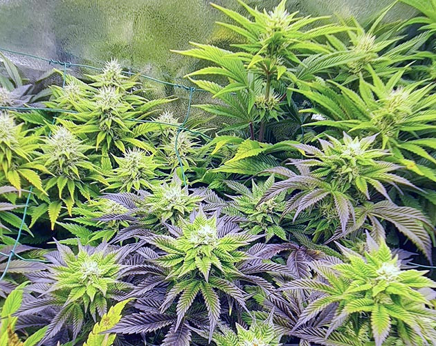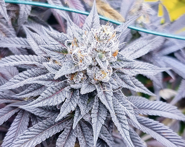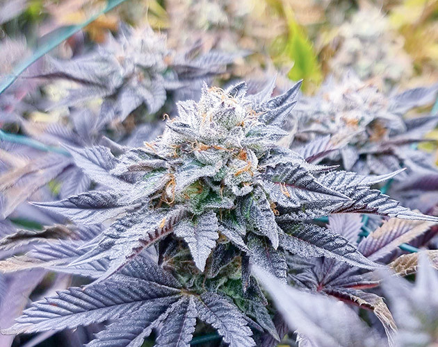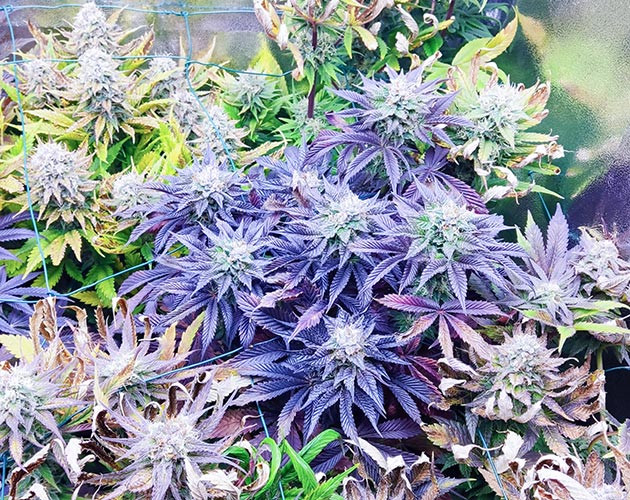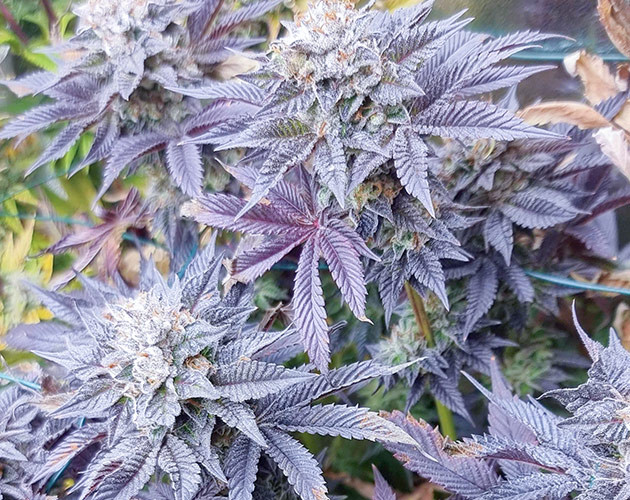 Раскрою вам небольшую тайну: вокруг кустиков Biscotti Mintz высажены сорта с похожей фиолетовой генетикой, некоторые из них – это Purple Punch, другие – гибриды на его основе. Но они не спешат становиться такими же фиолетовыми красавицами, как главные героини репорта. Хотя стоит сделать уточнение. Цвет «Бискотти Минтз» становится настолько насыщенным, что он уже не просто фиолетовый, а темно-синий, будто чернила.