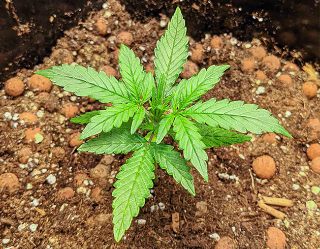Росточек сбросил каску на третий день после высадки в небольшой горшок со смесью почвы и кокосового субстрата. Лампа включена 18 часов в сутки на 25 % мощности, расстояние до саженца 60 сантиметров. Температура днем 24 °C, ночью опускается до 20 °C. Влажность 40 %. Поливал из шприца по 100 мл два раза за неделю.
