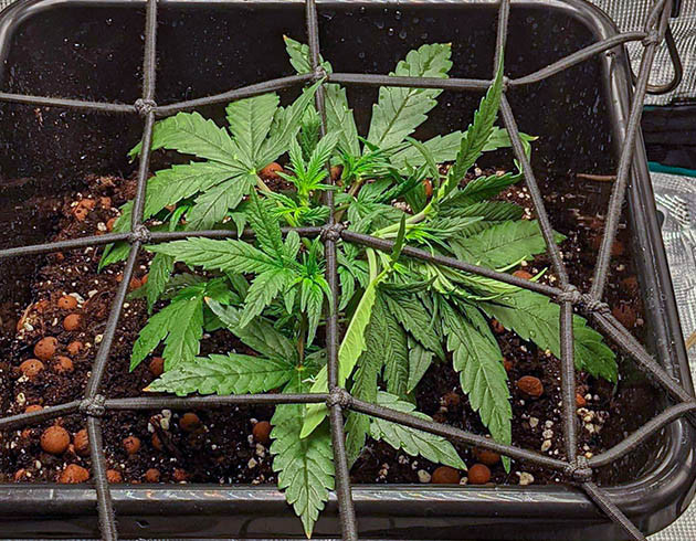 Взрывной рост продолжается. Создаётся впечатление, что куст растет буквально каждый час минимум на сантиметр. Он заполнил почти всю сетку, вытянулся примерно до 40 сантиметров. Лампа работает на 75 %, расстояние до макушки 35 сантиметров. Куст выпивает пять литров очень быстро, за два-три дня. Но уже сейчас могу сказать со 100%-ной уверенностью, что автопот – это находка для ленивого гровера.