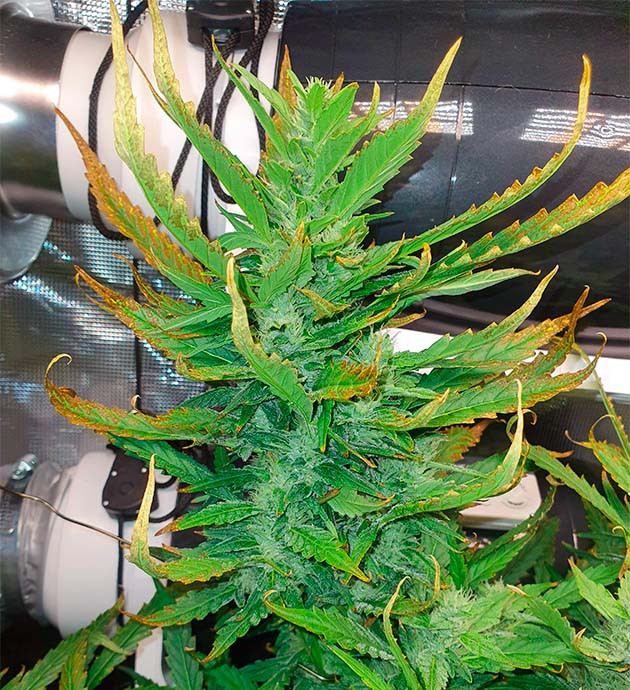 Во-вторых, стоит быть аккуратным с удобрениями, чтобы не получилось как в моём случае. Меня ввело в заблуждение именно то, что сначала пятна были похожи на ожоги от лампы. Несмотря на такие ужасные поражения, Gorilla Cookies Auto восстановилась. В-третьих, будьте готовы к постоянной дефолиации. Очень густое растение с большим количеством зеленой массы. Невероятно много листвы, которая отрастает очень быстро.