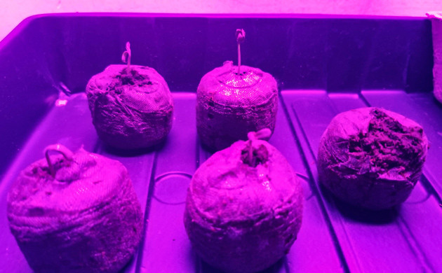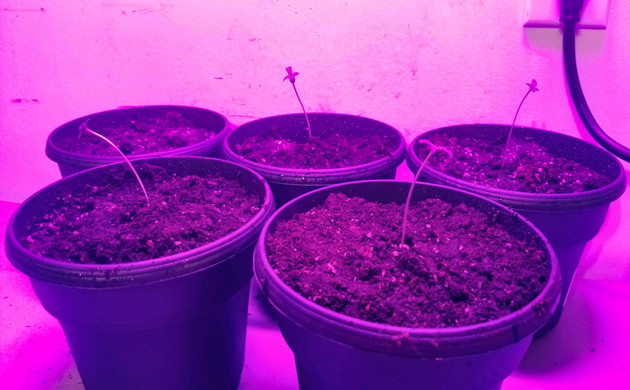 В распоряжении у меня было 4 прекрасных семечки ASD, которые я предварительно на 18 часов замочил в воде и отправил прорастать в торфяные шайбы. Весь этот процесс занял 4 дня. После этого я пересадил их в горшки диаметром 15 см, используя почвосмесь. Для начала установил лампу Costco grow light на высоте 40 см, и стебли начали быстро тянуться к ней. В конце недели установил рядом небольшой вентилятор. Высота растений была уже по 4 см.