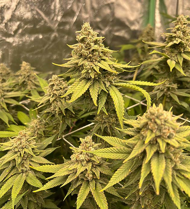 Гров Apple Betty прошёл без сучка, без задоринки. Генетика показала себя с наилучшей стороны, все три семки выросли в одинаковые кустики, фенотип один и тот же. Их если местами поменять, то разницы не заметишь. По особенностям могу сказать, что кушает этот сорт очень скромно, 700-750 ppm достаточно даже в начале цветения, если дать больше, то, скорее всего, будут ожоги от переизбытка. На тренировки реагируют отлично, гнутся легко, от топпинга восстановились быстро, после пересадки вообще не заметил никакого стресса. Структура у кустов гибридная, расстояние между узлами среднее, шишки довольно крупные. С началом цвета кустики увеличили рост в два раза и перестали тянуться. Каких-то нареканий по поводу грова нет.