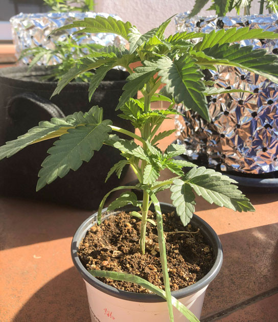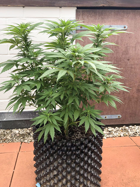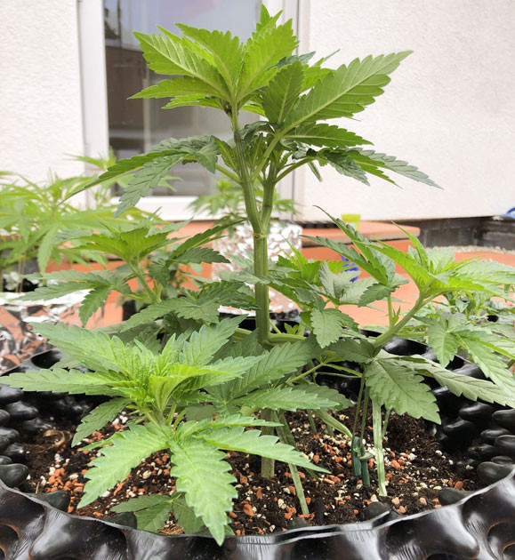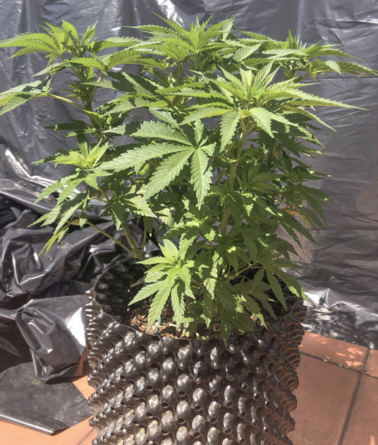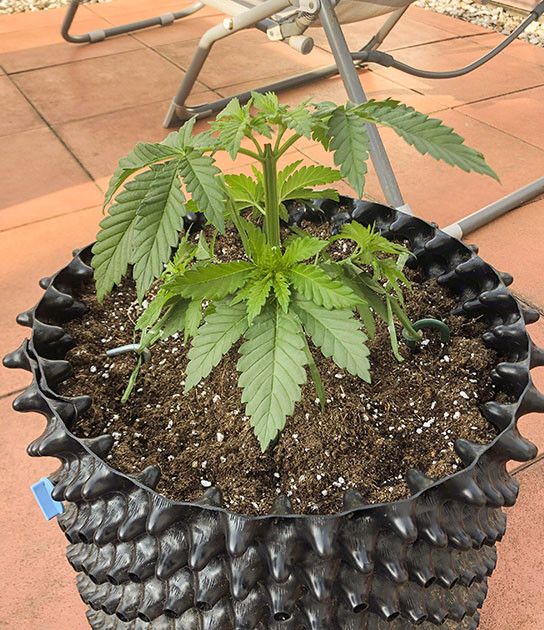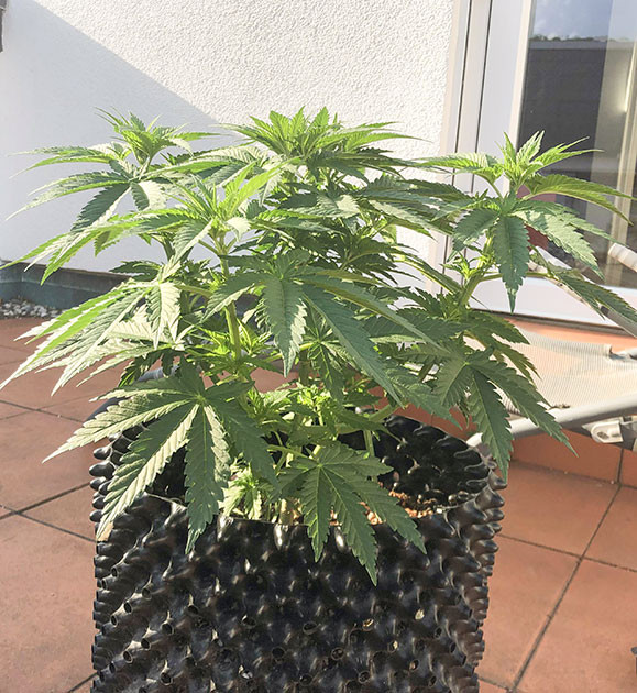 На пятой неделе куст вдруг начал расти очень быстро, вытянувшись до 20 сантиметров. По этой причине в начале шестой недели я решил применить технику топпинга, предварительно пересадив своего зеленого красавца в воздушный горшок на 16 литров. Я уверен, что, вплоть до харвеста, корням должно хватить места. Также я выполнил подгиб нескольких ветвей.