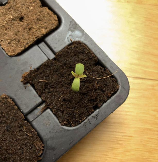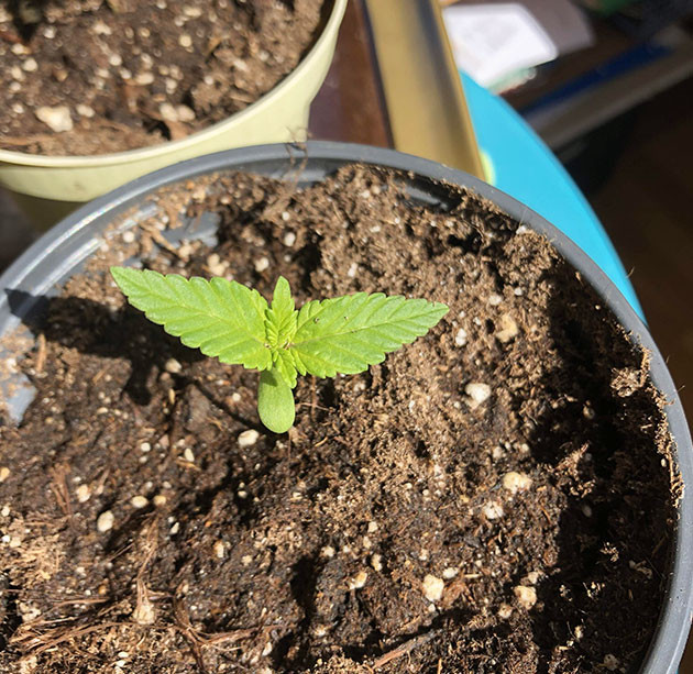 На первой неделе росток достиг высоты в 5 сантиметров и сформировал два небольших листочка. Все протекало стабильно, и уже через неделю я благополучно пересадил своего зеленого друга, который уже дорос до 7 сантиметров, в литровый горшок. Также я добавил в грунт удобрение Canna Rhizotonic в количестве 4 мл/л, чтобы простимулировать рост корней. На данный момент длительность светового дня составляла около 13 часов.