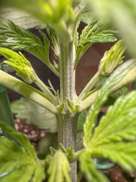Четвертую неделю я начал с того, что сменил световой цикл на 18/6, чтобы растишка активнее цвела и немного дольше находилась в темноте. Кустик неплохо вытянулся, боковые ветви тоже развиваются хорошо. Расстояние между узлами довольно большое, возможно, под другим светом структура была бы плотнее, а может, это генетика, не знаю. В любом случае кустик меня радует, и никаких проблем с ним не возникает. Цвет еще не начался, но все признаки скорого появления шишек очевидны. Поливы четвертой недели: