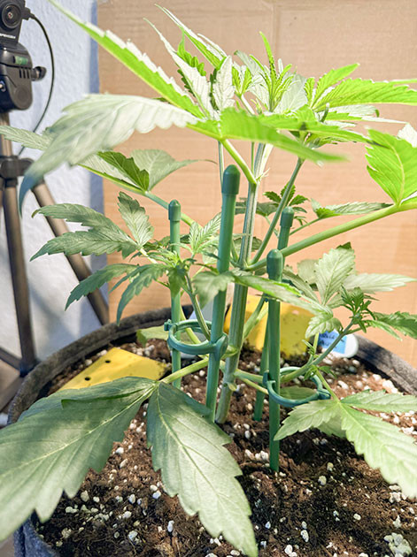Вторая неделя, и я очень доволен процессом. Кустик растёт, прямо как в репортах, которые я читал и смотрел, быстро, последовательно, без всяких проблем. К концу недели сформировались уже четыре этажа, а листья были большими, насыщенного зеленого цвета, упругие и здоровые. Рост «Лимончика» 13 сантиметров.