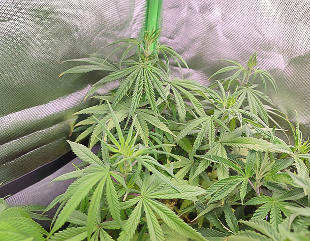 За вторую неделю «Горилла» продемонстрировала удивительную прибавку в росте. Такое чувство, что она одновременно и корни нарастила, и надземную часть куста. К концу недели рост кустика уже был 20 сантиметров. Он даже на фоне других моих растений был больше и пышнее. Решил приспустить лампу до 20 сантиметров, чтобы растиха так сильно не тянулась, иначе она разорвёт палатку. Поливал два раза по 200 мл, кустику вроде бы достаточно.