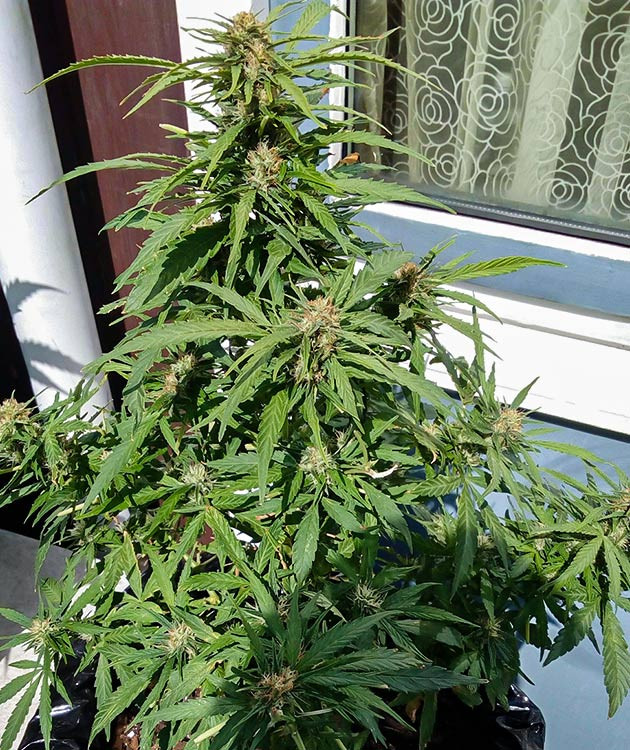 Девочка NYC Diesel Auto меня очень приятно удивила. Она выросла практически без моего участия, в огородной почве. Всё, что мне пришлось сделать, – это немного подкормить её из-за дефицита азота и пару раз полить в те недели, когда не было дождей. За счет большого размера куста сформировалось много шишек, но из-за не очень хорошей погоды они были маленькие. Несмотря на свой скромный размер, соцветия были смолистые и приятно пахли фруктами. Пришлось повозиться с маникюром куста для просушки, так как листвы было очень много. В конечном итоге я получил 50 грамм небольших шишек всего за 8 недель, приложив для этого минимум усилий. Это самый простой гров из всех, что мне приходилось проводить.