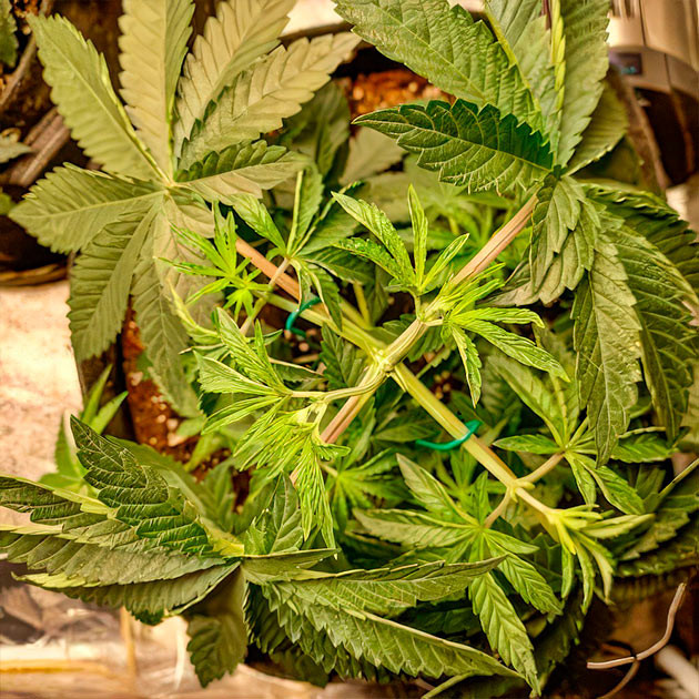 На третьей неделе начал поливать растихи активней и постепенно тренировать. На 15-й день дал по 500 мл чистой воды, на 17-й – 900 мл. На следующий день немного нагнул макухи у всех растишек, кроме отстающей. Её решил не трогать. После суток растяжки кустики получили по 900 мл воды. На 20-й день сделал топпинг на четырех растихах. А на 21-й день решил не мяться и рубанул макушку и у той, что отставала. К этому моменту разница была не так кардинальна. Но среди всех кустов появились два явных фаворита, они были больше процентов на 20, чем остальные.