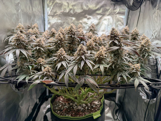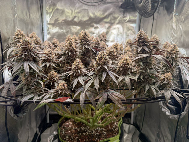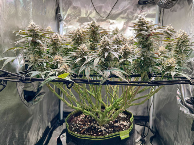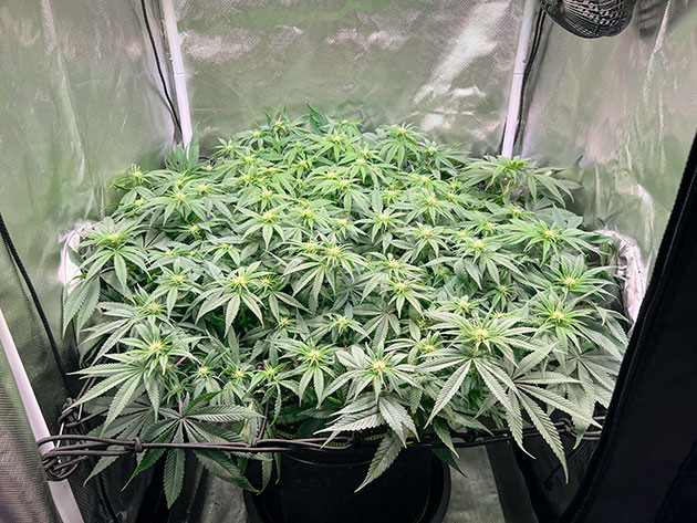 Эти три недели проходили стабильно. На четвертой я воспользовался LST-подгибом. На 31-й день я начал замечать, что один из кустов оказался недоразвитым. Скорее всего, я подверг его излишнему стрессу, сделав что-то не так. Было принято решение продолжать выращивать лишь одну оставшуюся растишку.