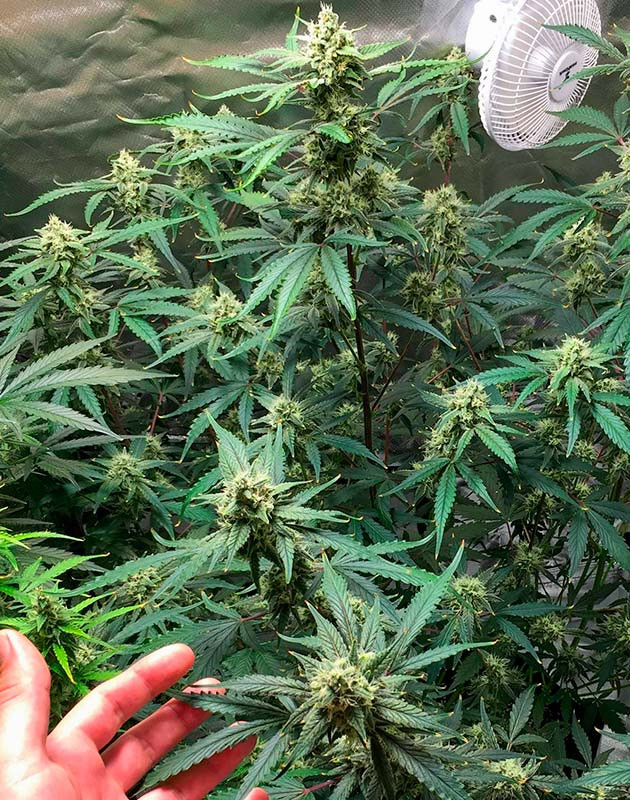 Цветение проходит замечательно! Никаких признаков стресса не наблюдается, хотя я неоднократно прибегал к дефолиации. К концу 10-й недели рост куста составляет 86 с лишним сантиметров. Как я и думал, с каждой неделей аромат усиливается, и сейчас он уже достаточно сильный, чтобы оценить отличную работу угольного фильтра.