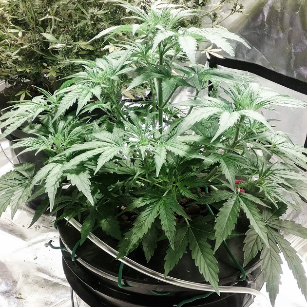 Темпы роста не могут меня не радовать. Да и в целом марихуана выглядит крепкой и довольной. В середине недели решил выполнить первую дефолиацию, оставляя пространство для проникновения воздуха и света, а также начал понемногу тренировать растение, применив технику LST.