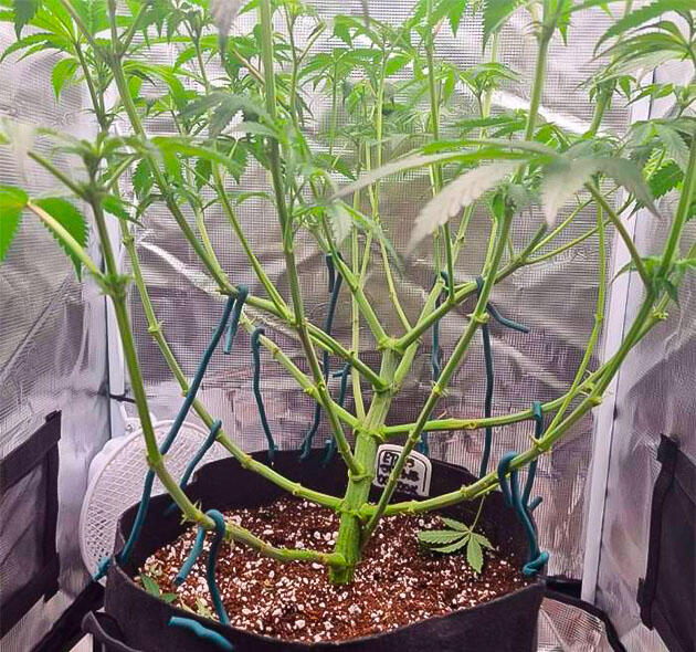 Сейчас куст находится на правильном пути. Планирую дать ему еще пару недель в вегетации, а затем переводить на цветение уже с установленной сеткой для контроля кроны.