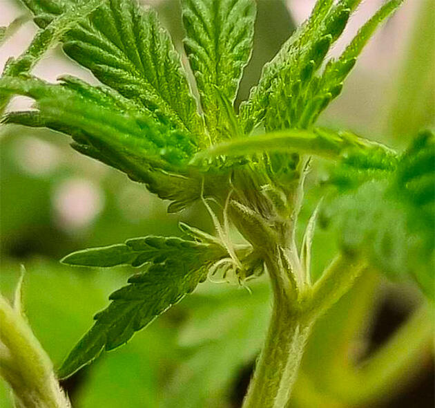 Такой рацион должен поддержать куст в переходный период и заложить основу для формирования плотных шишек. Реакция растения положительная. Листья по-прежнему здорового зеленого цвета, новых признаков стресса нет, но и пестиков пока что тоже.