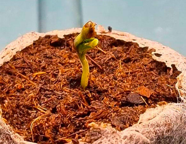 Первая неделя прошла активно. Я аккуратно увлажнял торфяную таблетку все тем же препаратом Starter Soak, распыляя раствор 1-2 раза в день, и уже через 2 дня головешка пробилась сквозь толщу субстрата.