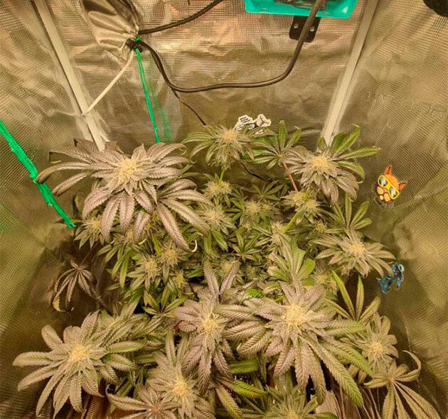 Strawberry OG Cookies оказался не только жизнестойким, но и благодарным сортом. Он прощал мелкие ошибки на старте, хорошо реагировал на формирование кроны, а в цветении раскрыл себя во всей генетической красоте. Куст уверенно занял весь объем тента, обильно покрылся смолой и радовал сладким ягодным ароматом, соединенным с удивительным внешним видом.