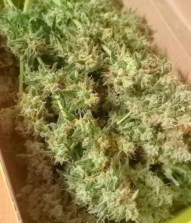 По запаху: пахнет слабо, если честно. Это в плане традиционного конопляного аромата. А сам запах – отвал! Очень сладенько, немного пряно, как манго или что-то тропическое. Сквозь бокс уже ощущаются легкие нотки, но, скорее всего, это из-за того, что второе окно для продува в боксе открыл.
