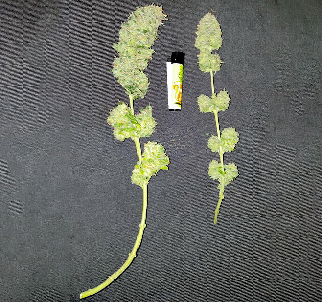 По весу 700+ г оттриммленных сырых шишек. Сушка в боксе при температуре 24, влажность 40-50 %. По итогу имеем 95 г Gorilla Zkittlez и 60 г Mimosa Shot. Плюсом еще около 40 г трима ушли на масло и 20+ г сжёг ради науки. Упёрся в 1,8 г/Вт, так что дальше только увеличивать количество досветов, чтобы получить 200+ г с такого бокса.