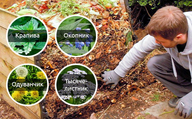 Ускоряют созревание компоста и сидераты, в корнях которых обитают полезные бактерии и микроорганизмы. Это крапива, окопник, одуванчик, тысячелистник, которые можно использовать слоями при закладке компоста.