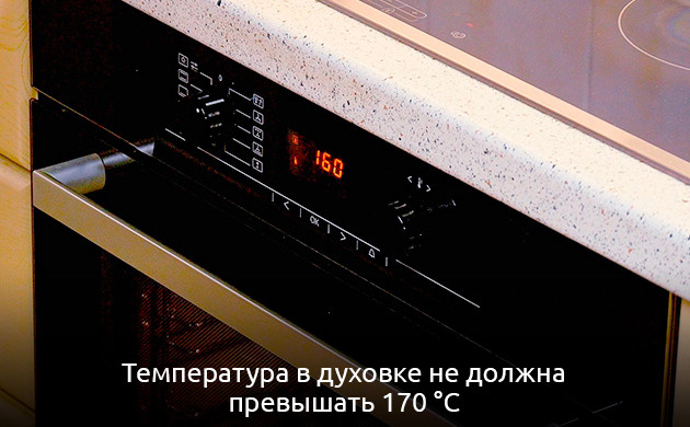 • При выпекании в духовке температура не должна превышать 170 °C.