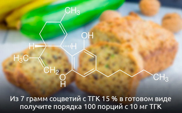 • Для расчета содержания ТГК в готовых продуктах можно ориентироваться на следующие цифры. Если вы приготовите канна-муку из 7 грамм соцветий с концентрацией ТГК 15 %, то в готовом виде получите порядка 100 порций, в которых будет содержаться 10 мг ТГК.