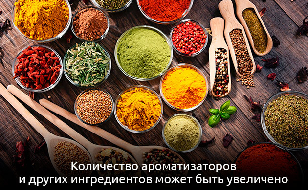 • Из-за характерного и достаточно специфического вкуса конопляной муки количество ароматизаторов и других ингредиентов, влияющих на вкус готового продукта, может быть увеличено.
