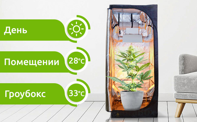 Летом в дневное время температура воздуха в помещении может значительно повышаться. Если к этому добавить еще и жар от работающих мощных ламп в гроубоксе, то в подобных условиях поддерживать оптимальную температуру для конопли становится значительно труднее. Избыток тепла может стать сильным стрессом для растений.