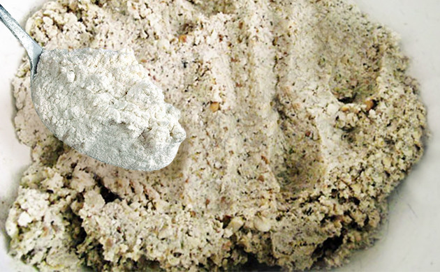 1. Тофу протирается через сито и смешивается с конопляным семенем, овсянкой и специями.