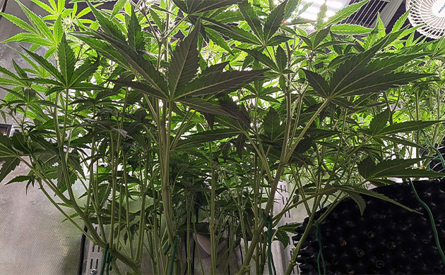 Переломный момент грова. Я решил оставить в боксе только один куст, а второй отправился на улицу, где я буду за ним присматривать по мере возможностей. Всё дело в том, что большая растиха настолько хорошо развивается, что в палатке хватит места только для неё. В конце девятой недели её рост уже составлял 86 сантиметров. Сделал дефолиацию, удалил некоторые нижние ветви, на которых формировались шишки, но они не получали достаточное количество света. Пьёт куст по 2,2 литра каждый день. Удобрения: