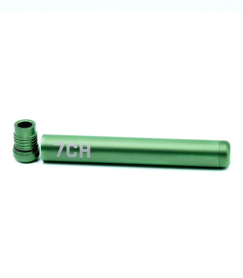 Фирменный кейс для самокрутки 7CH представлен в четырех цветах: золотой, серебряный, зеленый, черный. Он изготовлен из авиационного алюминия, благодаря чему очень лёгкий, но прочный и долговечный, не окисляется с течением времени. Его длина – 11,5 сантиметров, так что в него влезет очень смачный джойнт. Герметичная конструкция джойнт-холдера не даёт запаху каннабиса пробиваться наружу, что очень кстати, если вы решили скрутить папиросу и прогуляться с ней. На кейс нанесены фирменная айдентика 7CH. Изделие приятно лежит в руке и в целом выглядит очень стильно. Кейс для самокрутки 7CH станет хорошим выбором в качестве подарка для гровера и отлично впишется в коллекцию мерча от «Семяныча».