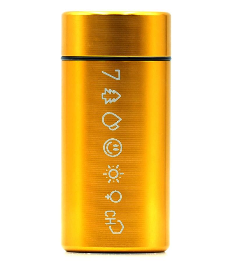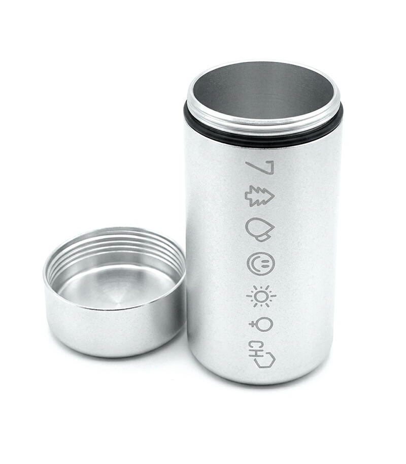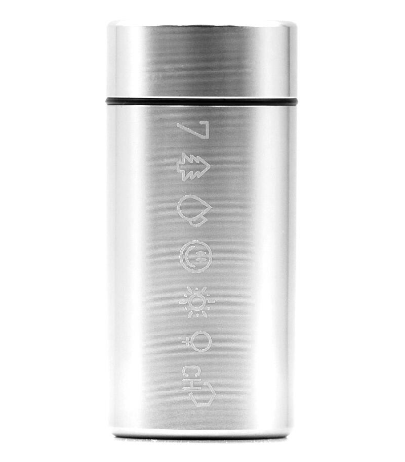 У каждого из нас возникала необходимость взять с собой небольшое количество шишек. И если они действительно качественные, то аромат становится серьезной проблемой. Да и носить с собой бумажный сверток или пластиковый пакетик как-то неэстетично. Контейнер металлический 7CH малый вмещает в себя достаточное количество растительного материала, чтобы вам были рады на любой вечеринке. Он выполнен из авиационного алюминия, за счет чего прочный, но лёгкий, а также полностью герметичный, не пропускает аромат. Размер контейнера – 3,3х7,4 см, вес – 43 гр. Он представлен в четырех цветах: золотом, серебряном, черном и зеленом. На контейнер нанесен фирменный принт 7CH.
