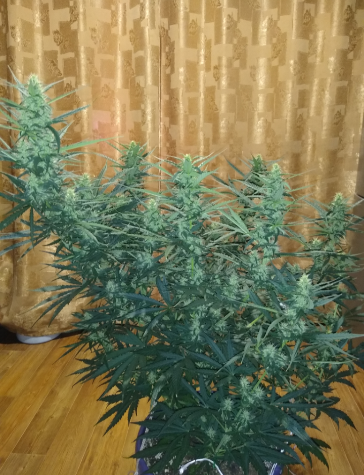 Шишки супер смолистые, очень вкусные и ароматные (воняло даже на лестничной клетке)?. Жаль, что мало уродилось. Выращивал в гроубоксе два куста. Размеры бокса 1.2м*0.8м, лампа лед350Ватт + 4 досвета 30Ватт каждый. По времени не ложились в заявленое время где-то на неделю (может я передержал). В общем всё нормально, твёрдые 4 балла из-за несоответствия по заявленному весу готовой продукции. ??