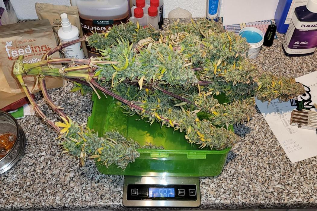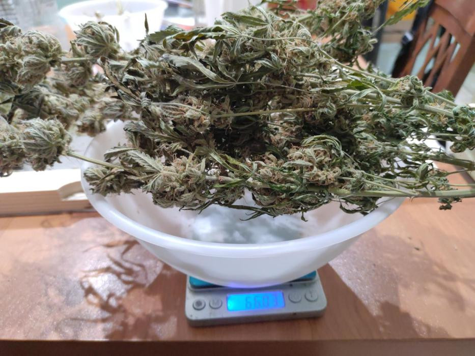 Я думал, что времени на гров потребуется больше, но в 11 недель собрал урожая, немного раньше из-за запланированного отпуска. Всего вышло с 3 кустов 315,2 г. Я также нарезал много попкорна и положил его в морозильник. Скоро буду делать ледяной хэш.