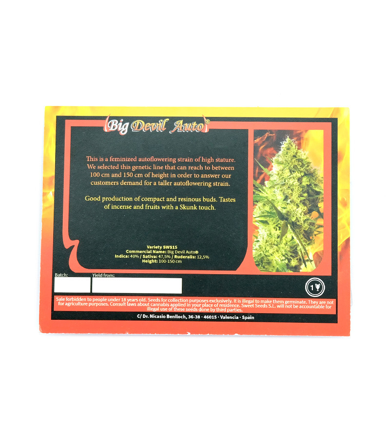 Семена сорта Big Devil Auto fem (Sweet Seeds) Испания, Феминизированные, Автоцветущие, ТГК-15 - 20