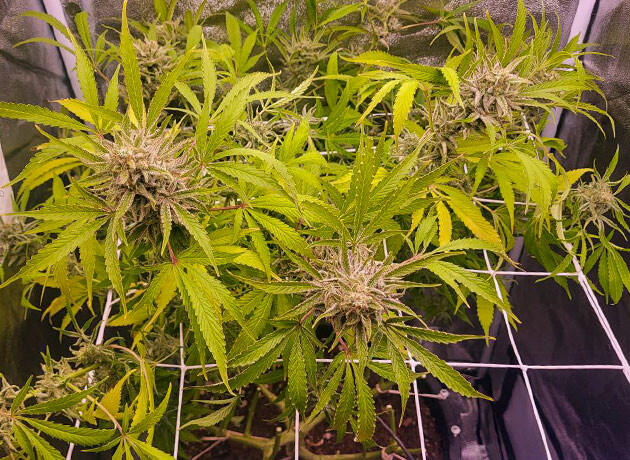 Растение отлично переносило топпинг и подгиб. Особо не капризничало в плане подкормки (органические удобрения BAC вообще отлично зашли, а также бустеры). Стрессов серьезных не было. Однако высокая влажность, даже при тепле в боксе, сыграла злую шутку. В общем, мой косяк, конечно.