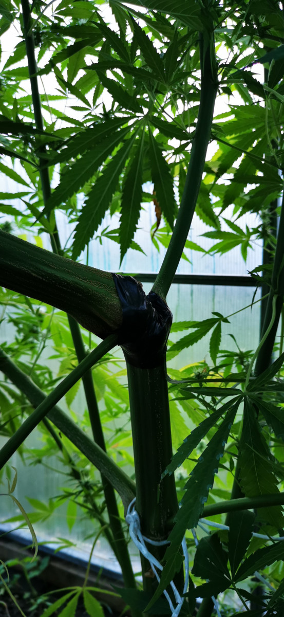 Семена проросли без проблем! Посадил 1 июня 3 штуки в аут подмосковья 2020 в теплице! 1 просто не трогал вымахала 2 с лишним метра высотой и более 2 метров в обхвате! Ветки подвязал, где за ствол завязал там по мере роста верёвка врезалась в стебель на половину ей хоть бы что! Наклонил и нечаянно сломал но не до конца, там где врезалась верёвка! Место где сломал завязал изолентой и в таком состоянии оставил а ей хоть бы что растёт дальше! В начале сентября поставил 2 обогревателя на ночь включаются! Второй куст подрезал, выросло 3 стебля но жидкий какой-то и на 3 недели позже зацвел чем сломанный! 3 посадил в 10 литровый горшок и стал гнуть в один день пришёл а он сломанный, перестал гнуть! Вырос 1 метр и только начал зацветать! 2 и 3 наврят ли даже что-то с них получиться а вот с 1 думаю что-то получиться, процентов 10 трихом потемнело надеюсь хоть на половину созреет грамм 200 надеюсь с него собрать!