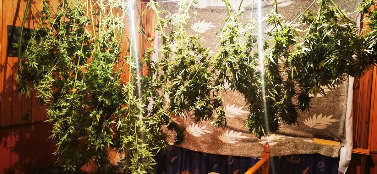 Мои первые фотики.Индор,земля+перлит в 20 л,днат-600.Проращивал пару семян в земле,проросли без проблем,впрочем как и всегда.Спустя несколько дней после скинутой каски стал вносить корневин.Через две недели после высадки начал вносить "Байкал-эм1",подкармливать органикой,продолжил вносить корневин.Растения развивались здоровыми,по ходу роста проблем не возникало.На четвертой неделе решил перевести в режим цветения,девочки уже были подходящего размера.Зацвели через пару дней в режиме 12/12.С этого времени начал использовать удобрения для цветения,чуть позже стимулятор цветения,золу и корневин.Шишки увеличиваются с большой скоростью,одна была чуть сативнее,имела более рыхлые шишки.Запах ощущается и увеличивается по мере роста,стоит подумать о фильтрах.На 93 день начал частями собирать урожай,полностью процесс закончился на 108 день.Рост первой девочки- 93,второй-75.Сухой вес 56 и 64 соответственно.Первая дала более рыхлые шишки,с меньшим весом,но более вкусная и эффект качественнее.Вкус и сила раскрываются по мере пролечки.Эйфоретик-королевский,это вам не сопли и кома с индикой.Сорт лучший из всего того,что пробовал.Буду гровить и в дальнейшем.