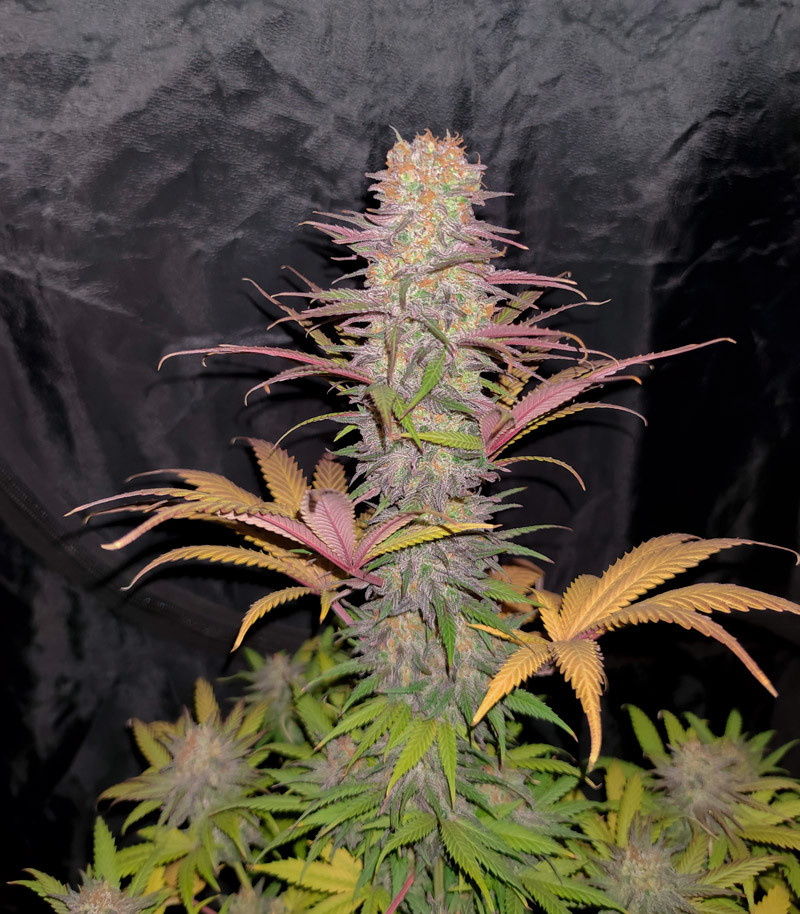 Первое, что стоит отметить – отличное соотношение листвы и соцветий. Во время развития растений формируется не слишком много зеленой массы. В первую очередь это связано с достаточно коротким периодом вегетации. В паспорте сорта указано, что в закрытом помещении достаточно 3-4 недель в веге, после чего растихи можно переводить в цветение. Как показывает практика, иногда Gelato 242 стоит постоять в веге немного дольше, но листвы получается не очень много. Эта особенность делает данный сорт хорошим выбором для культивации на улице. Растихи не бояться повышенной влажности в случае дождливой погоды.