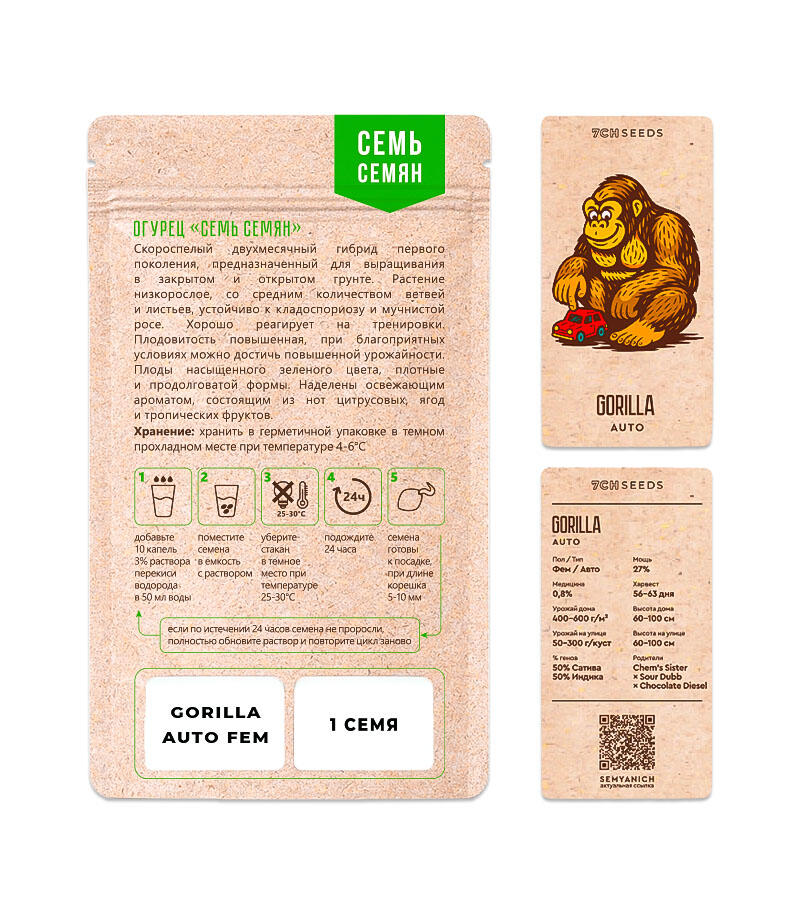 Отзывы о сорте Gorilla Auto fem (Семяныч) Страны Европы, Феминизированные, Автоцветущие, ТГК-27