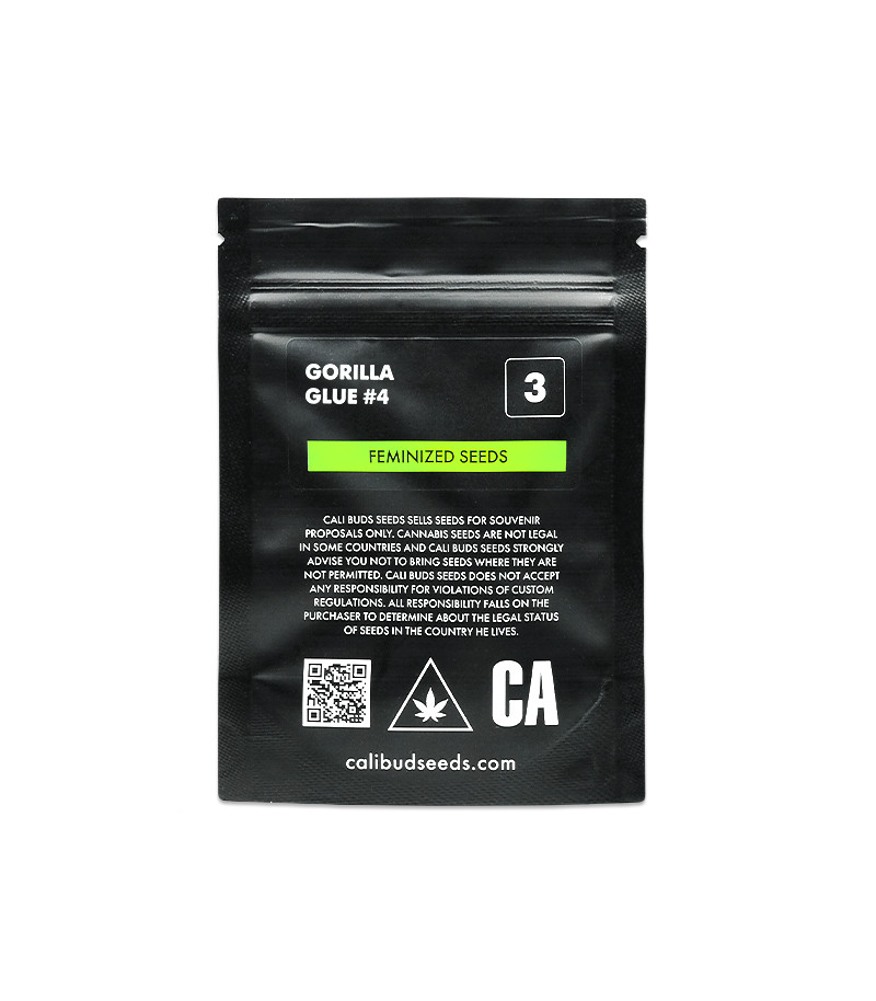 Сорт конопли Gorilla Glue #4 fem от Cali Buds Seeds является одним из ярких представителей недавно нашумевшей на весь мир генетики «Гориллы». Это сатива-доминантный гибрид, прославившейся высоким уровнем содержания ТГК, который в лабораторных условиях может достигать 32%. В реале же гроверу удастся получить 25-28%. Концентрация КБД в нем очень маленькая, поэтому шишки сорта действуют преимущественно церебрально, однако тело все же подвергается воздействию диванного стоуна. Также стоит отметить быстрый и неприхотливый рост растения.