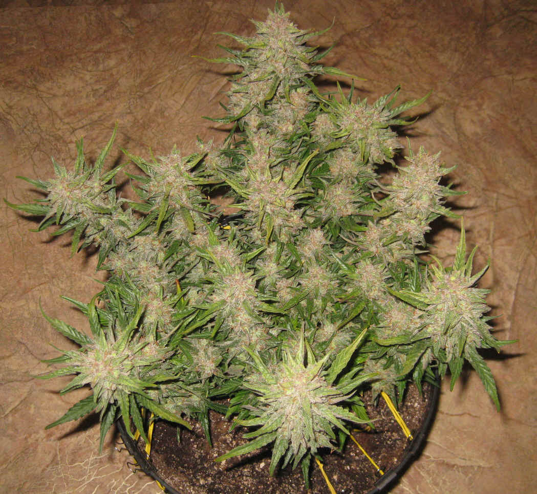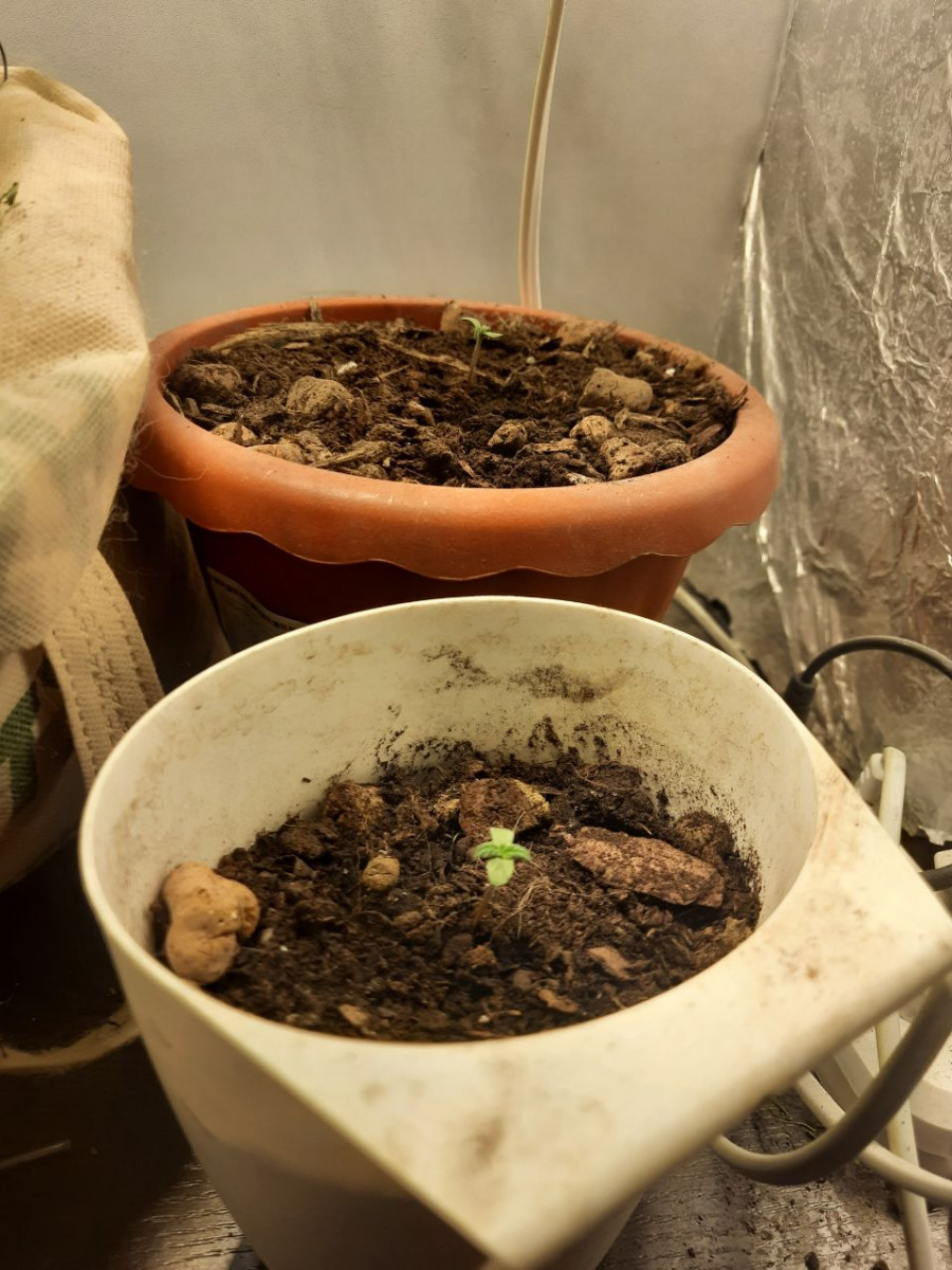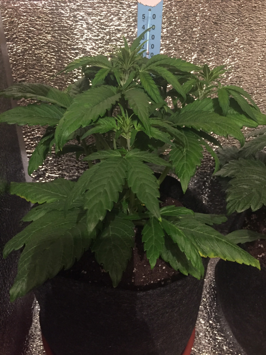 Пришло 5 семян от Семяныча. 3 - грин о матик, 2 - ак бонус (ак оставлю на аут, спасибо)))). Начал проращивать с одной, положил меж ватных дисков и в контейнер для еды, обернул в полотенце и поставил на батарею. Через сутки корешок был уже длинной 1.5-2 см и я решил высаживать в джифик. Положил семечку в размоченный джифик, а сверху накрыл срезанным горлышком от бутылки, чтобы было что то вроде парничка и поставил под свет (фитолампы на 120вт потребляемой мощности). Ровно через сутки, он скинул каску и корешок перерос джифик и настала пара высаживать. Выбрал самую обыкновенную землю (универсальную), на дне сделал слой из агроперлита -3-4 см, землю размяк от комков и тп, и на 6 литров земли закинул 1 литр агроперлита. Высадил джифик в смесь. Световой режим выбрал 20/4, под конец вегетации 18/6. На 23 дней показала пол и активно начали формироваться шишечки. Запах очень слабый, на свете нет практически вообще, в комнате запах однозначно присутствует, но дальше не выходит. Как вариант можно использовать Эрвик - справляется на ура. Поливаю обычной бутылочной водой "Святой источник", удобрения ГХЕ, но удобрять начал со второй недели. Пьет мало, лью литр раз в 3 дня. В данный момент на 36 дней и мы активно растем, появляются трихомы, шишки становятся плотнее, что очень сильно радует!))))