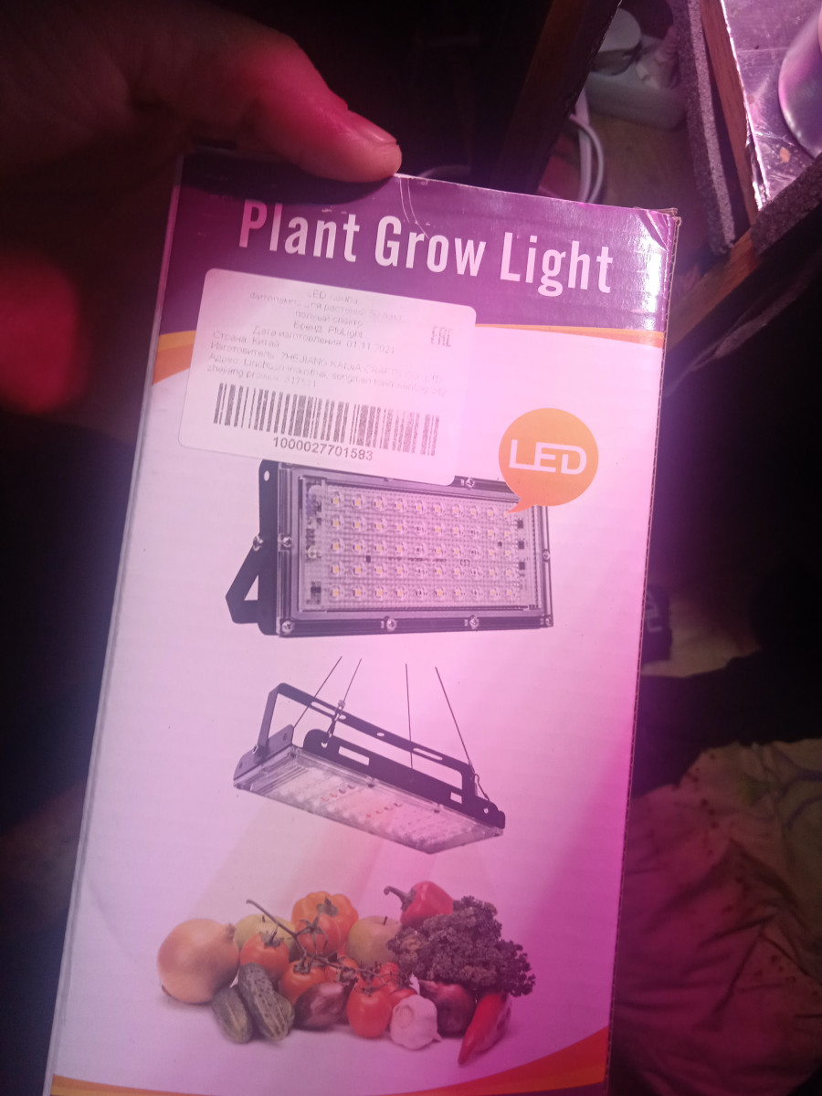Лампа купил в озон за 900 р 50 в.. Полный спектр разветвитель на 3 лампы и 3 лампы разных спектров работаю в паре на фото 2 недели в качестве отражателя алюминиевый скотч с работы