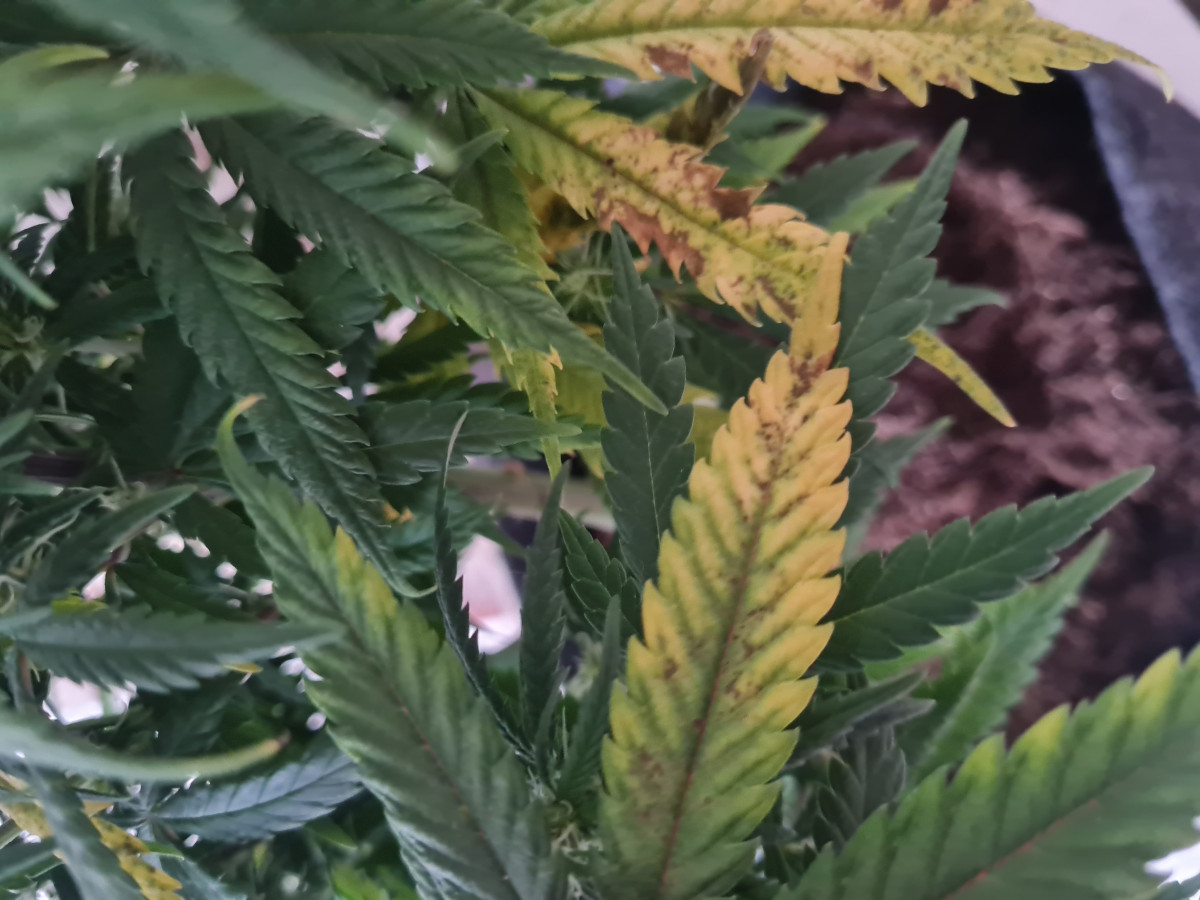 Привет Семяныч! Подскажи, что с растишкой. Джек херрер, 3 неделя цвета, листва пошла чахнуть, в чем дело? Свет Quantum board 120, Поливаю GHE компотом + Calmag. PH 6.4 по таблице от производителя, t в боксе 27/23. Помогите пожалуйста спасти растиху