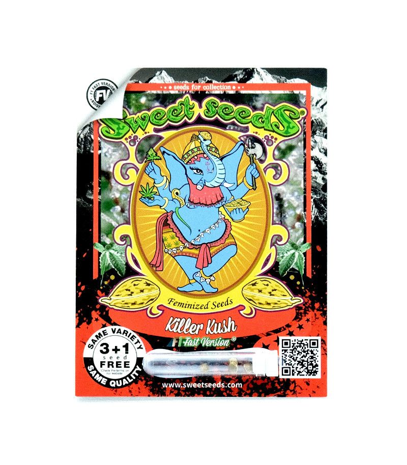 Семена сорта Killer Kush F1 Fast Version fem (Sweet Seeds) Испания, Феминизированные, Фотопериодные, ТГК-18 - 25