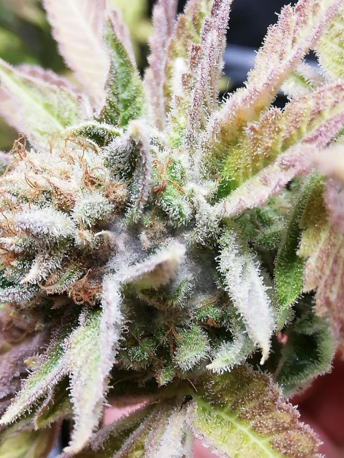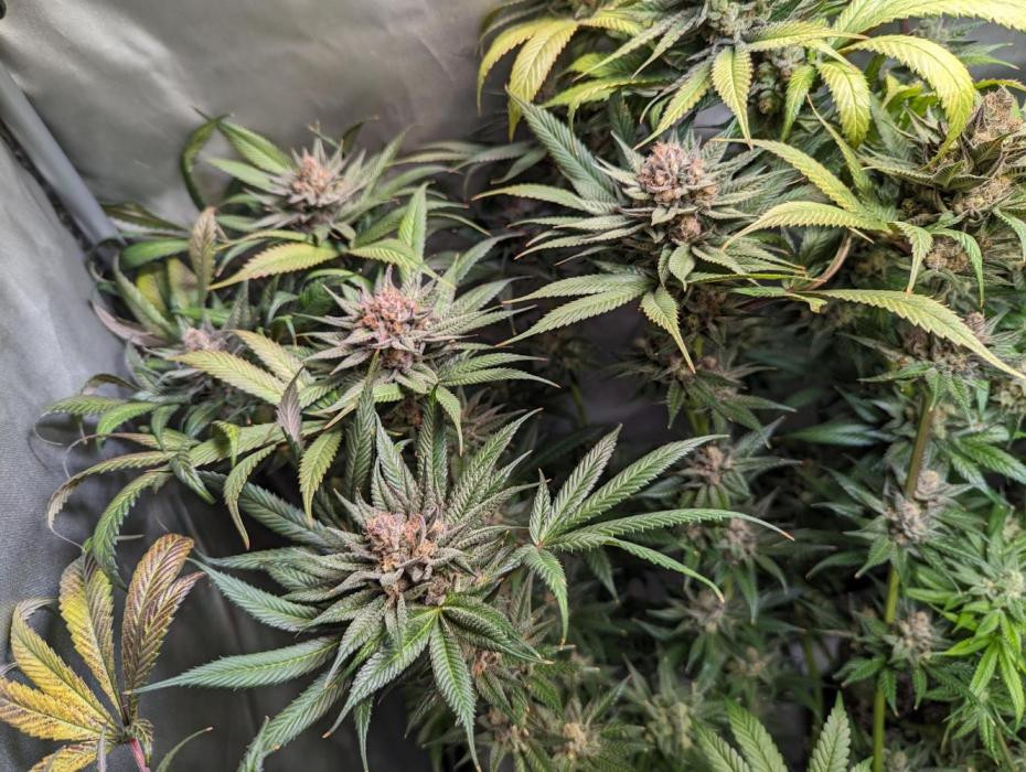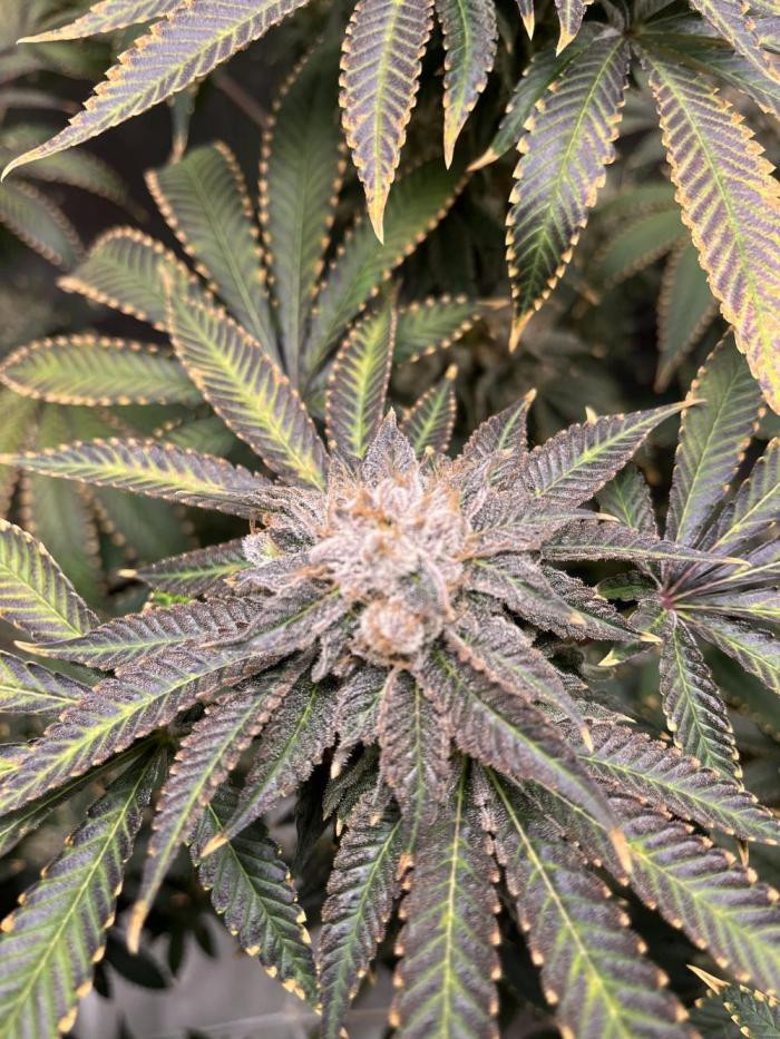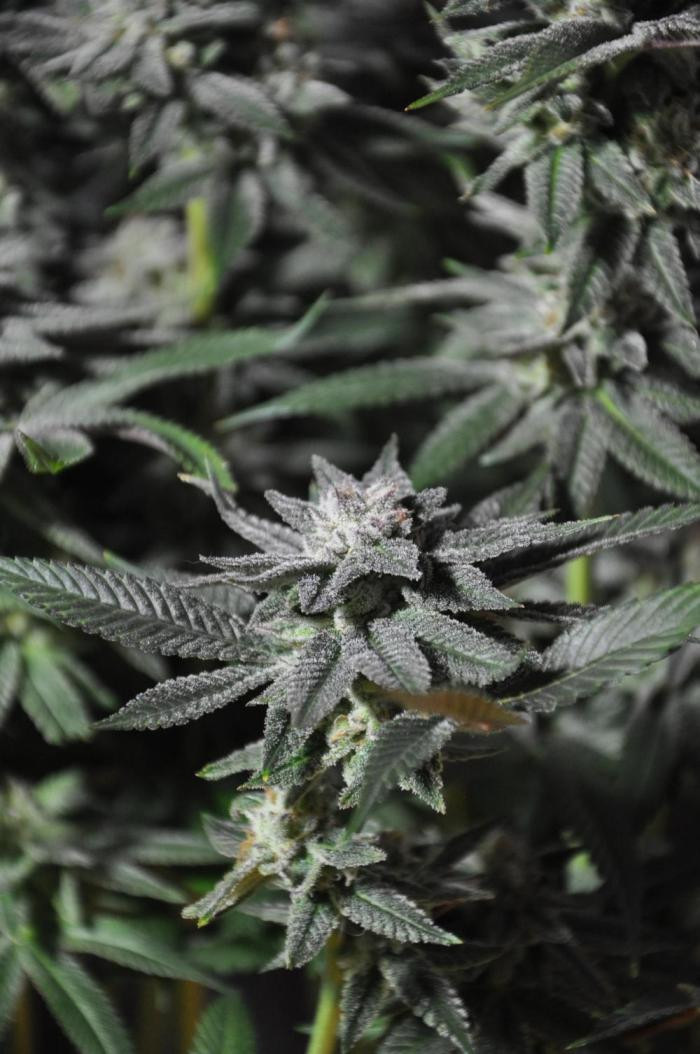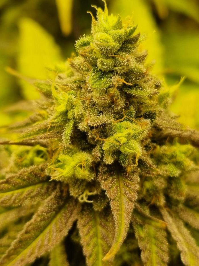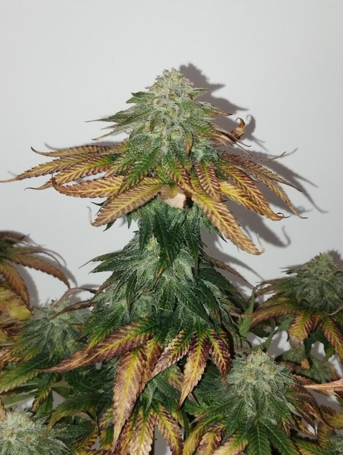 Растение дало крупные плотные колы и было очень продуктивным на трихомы. Междоузлия после вытягивания были немного шире, чем мне бы хотелось, но в целом я бы сказал, что его можно отнести к средним (4-8 см). Было некоторое потемнение более крупных листьев по краям и на кончиках чашечек ближе к концу цветения, но растение в основном выгорело до желто-золотистого цвета, возможно, больше указывающего на наследие Super Lemon Haze и доминирование этих генов в этом конкретном фенотипе.