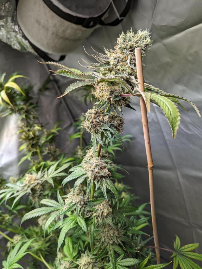 У меня получилось 2 фенотипа из 2 кустов. Одному я сделал топпинг, а второму LST. так вот Второй фенотип с LST дал шишек больше, чем первый с топпингом. Он также созрел быстрее и обладал интенсивным лимонно-апельсиновым вкусом.