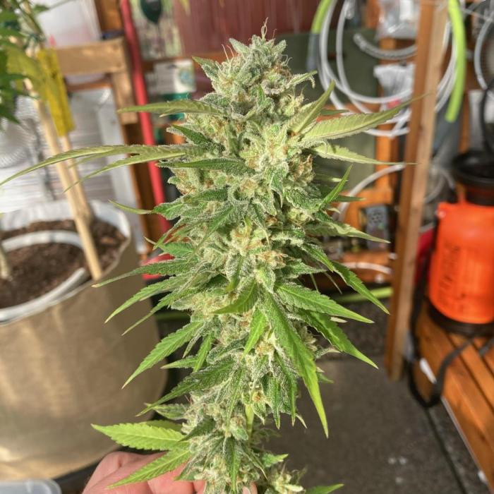 Выращивать непросто, но терпены – просто огонь! У этого сорта вкус сладкий апельсиновый, а удар такой, словно лошадь лягнула.